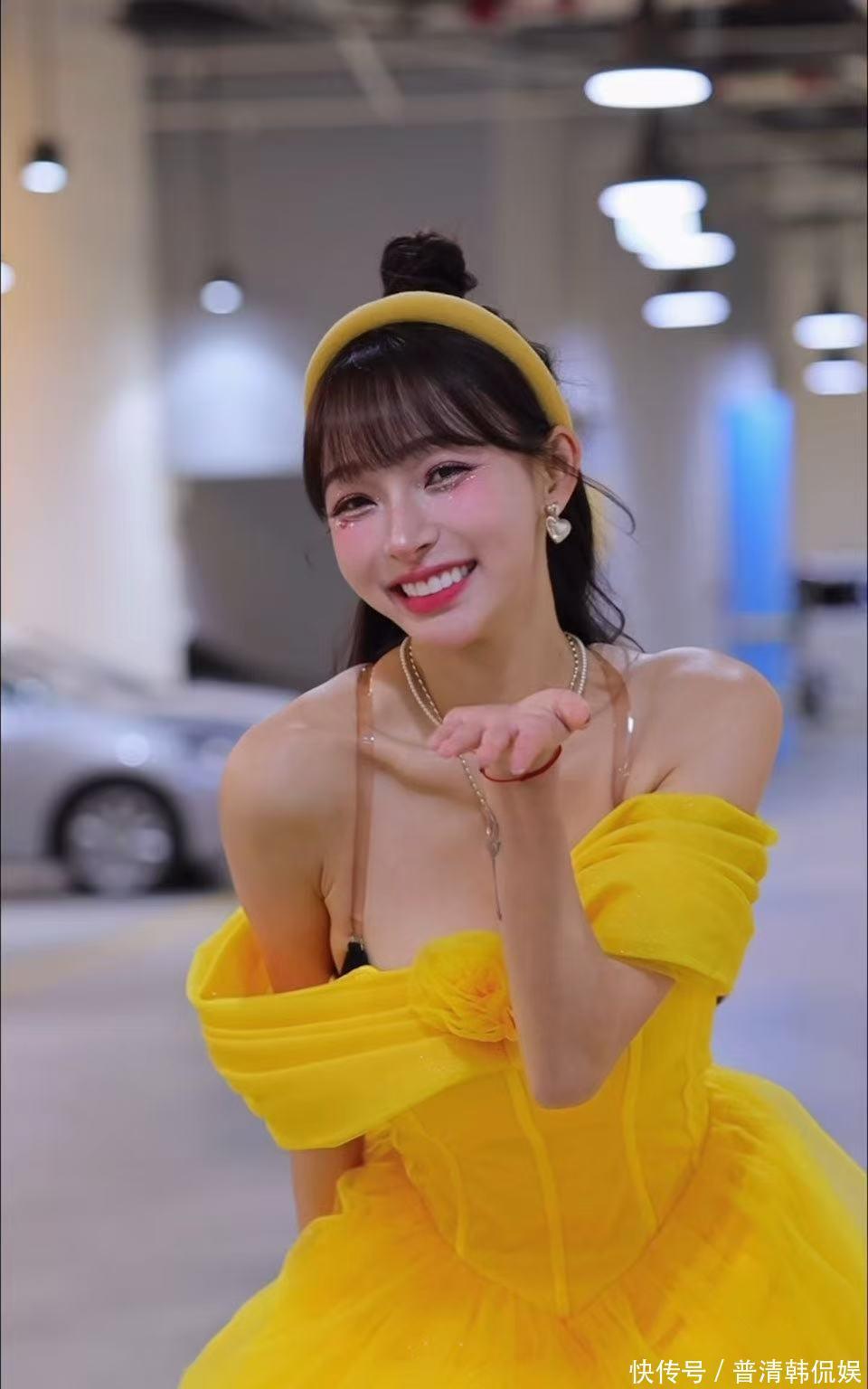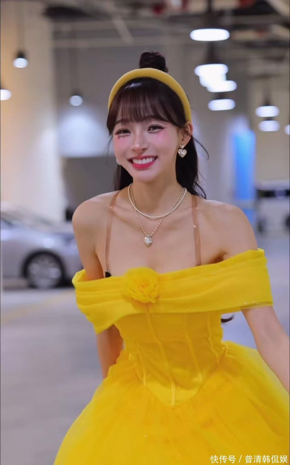 林襄化身成为「真人版」的贝儿,舞会长裙当然未能掩盖她澎湃上围,在小跳步展示造型时,胸前波涛汹涌,与童真笑容形成强烈反差。